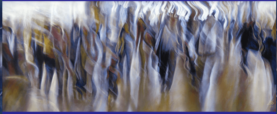 If you go back and see the three images in one continuous flow, you can feel the movement starting slowly in Sebastio’s work, picking up momentum in Randy’s work and peaking in NgAngA’s painting.